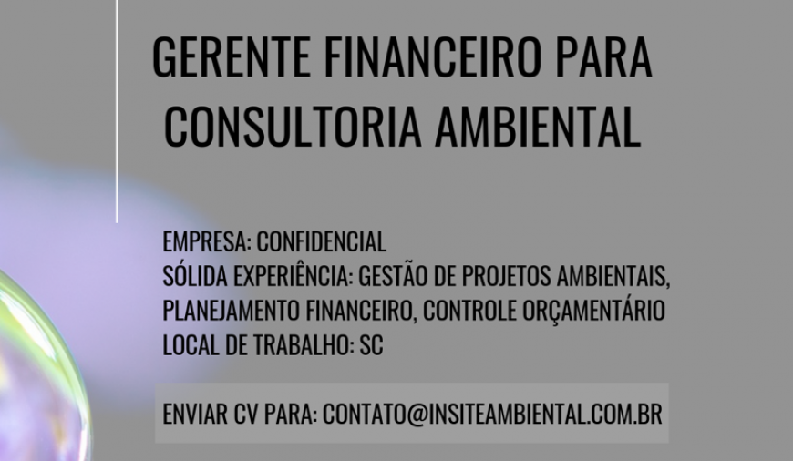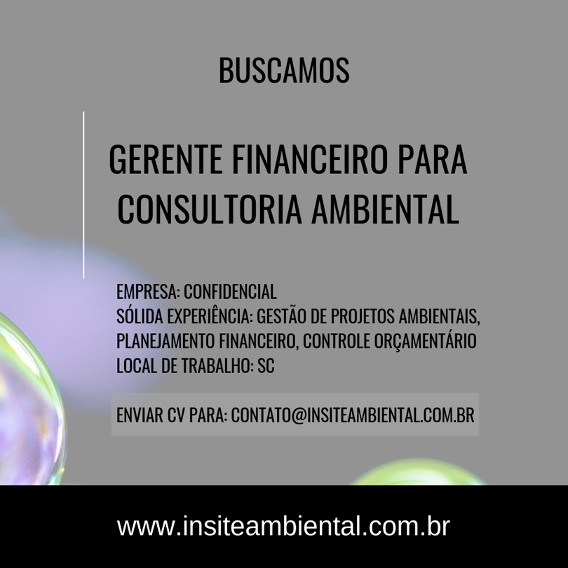 Se você está buscando uma oportunidade de trabalho na área ambiental, acesse (www.insiteambiental.com.br) e conheça os planos de Gestão de Carreira da INSITE Ambiental. Nosso trabalho de recolocação profissional é exclusivo para as áreas ambiental e de sustentabilidade. Todo o processo de orientação e mentoria na INSITE é feito com um profissional que tem mais de 30 anos de experiência nestas áreas. Monitoramos, diariamente, as vagas do mercado. Para maiores informações entre em contato diretamente pelo e-mail: contato@insiteambiental.com.br.